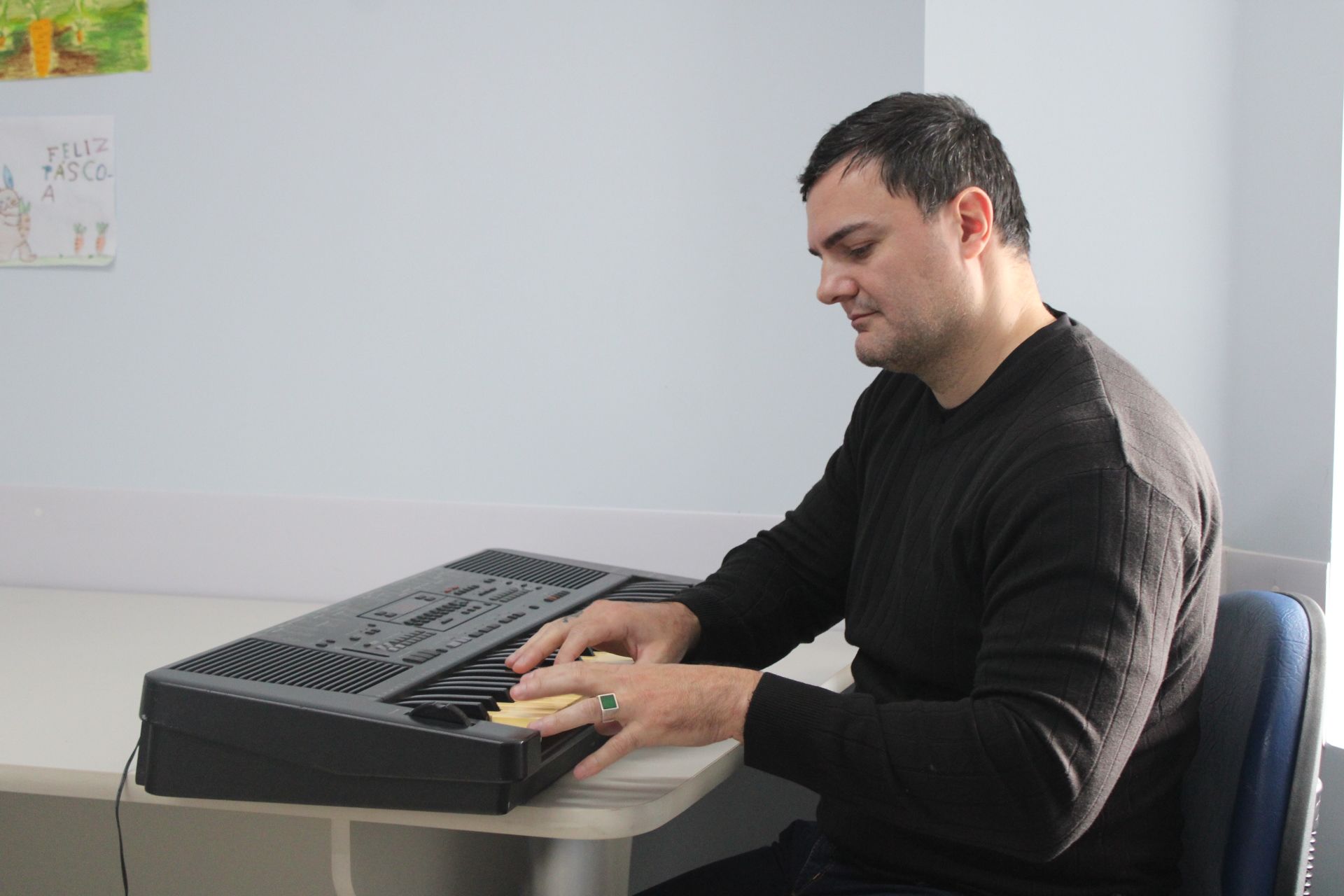 Felipe Brognoli é psicólogo e coordenador das oficinas de música do CAPS. (Foto: Maria Isabel Miranda)