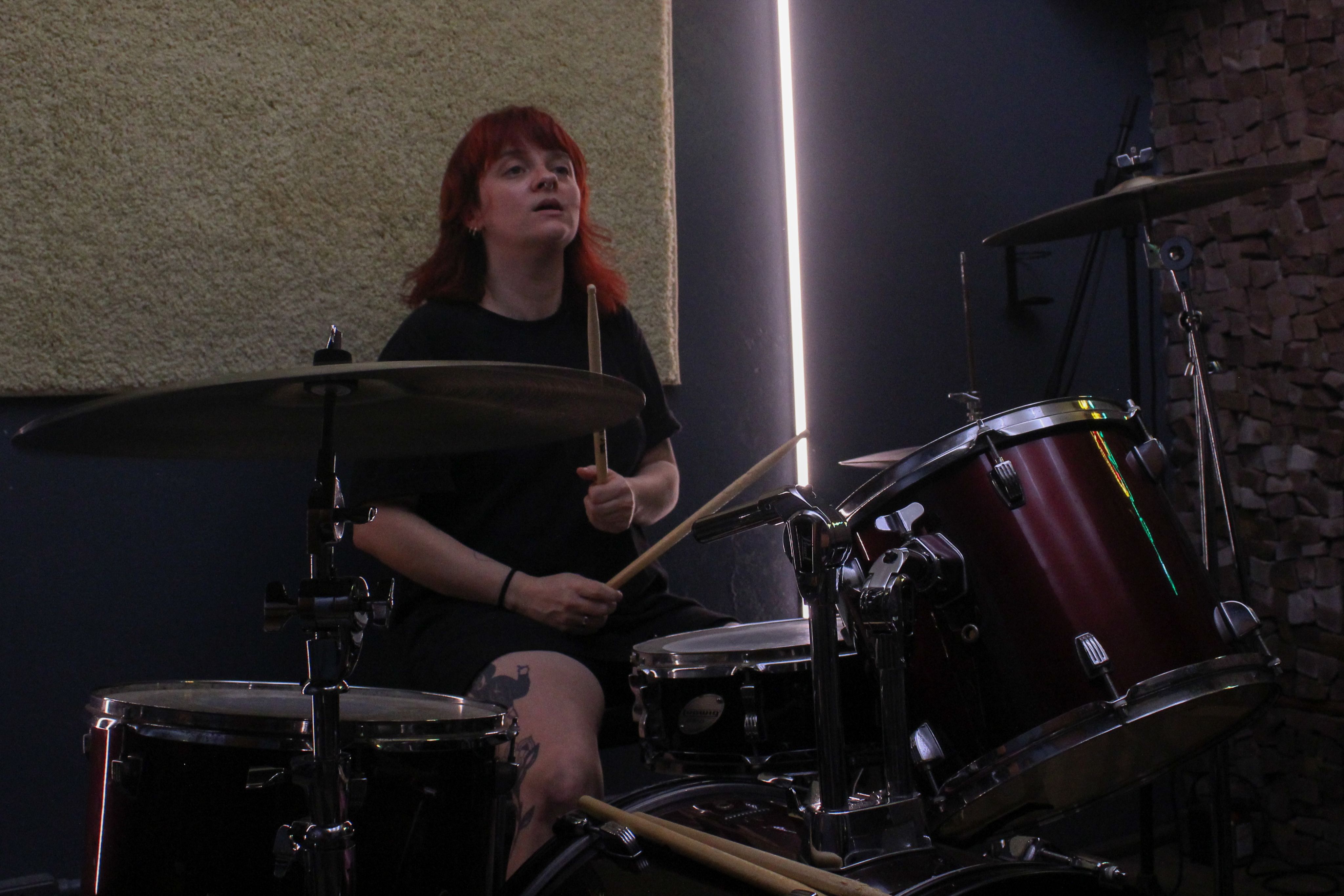 Mariel Maciel, além de baterista do duo, é professora de bateria. (Foto: Érica Zucchi)